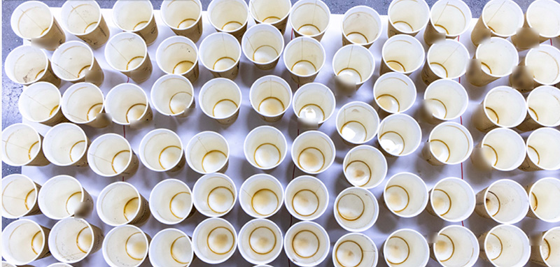 Eksperimentinis procesas: Padėkite PE, PLA ir vandeninę išklotą popierinį puodelį, iškaskite duobę priešais tyrimų pastatą ir leiskite jiems natūraliai skaidyti. Kiekvieną kartą, kai jis yra iškastas, jis turėtų būti grąžintas į pradinę vietą, kad būtų galima stebėti savo būklę.